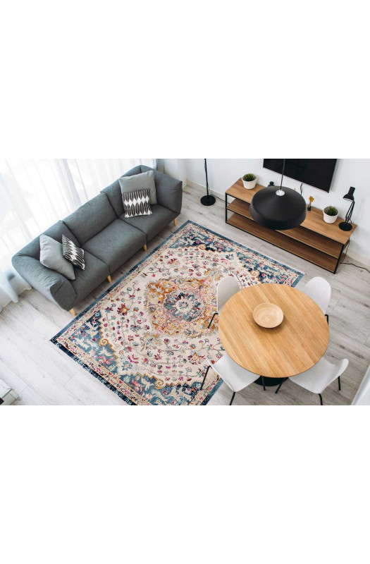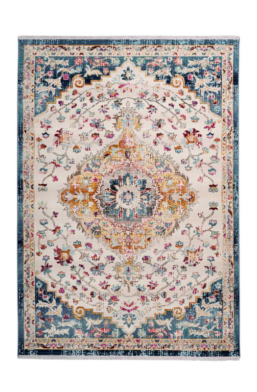 Килимове покриття Anouk 1025 white/blue виконано у вінтажному стилі. Гармонійно підібрані відтінки роблять цю модель універсальною для будь-якої колірної гами в інтер’єрі. Бахрома по краях килима додає дизайну ноти затишку.
