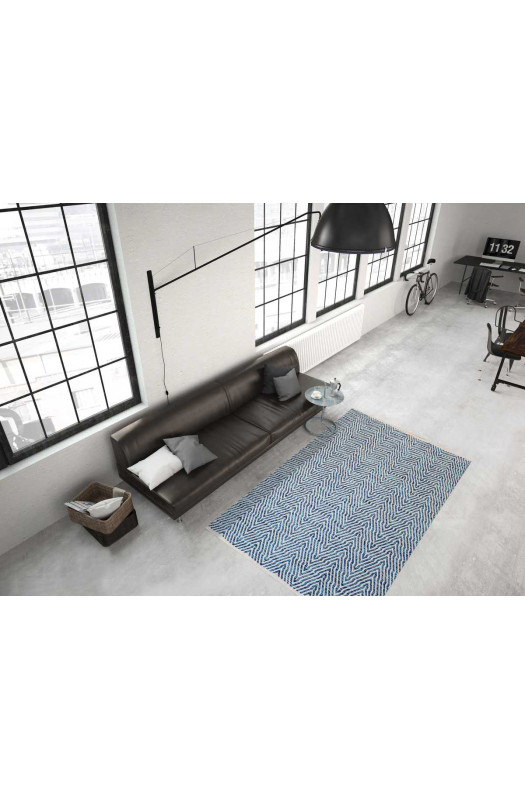 Aperitif 410 blue — оригінальне килимове покриття, виконане в техніці handmade. Ідеальне поєднання кольорів і текстур створює відчуття комфорту. М’яка, приємна на дотик структура килима занурює в стан розслабленості. Модель стане ідеальним доповненням інтер’єрів в стилі кантрі і прованс.