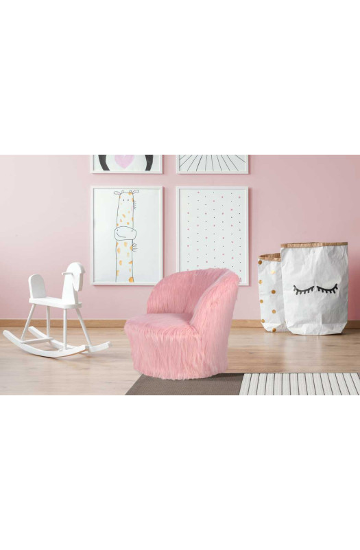 Дитяче крісло з чохлом зі штучного хутра Плюшеве крісло Bamby Pink - відмінне рішення для дитячої або ігрової кімнати. Модель виконана в ніжно-рожевому відтінку, який ідеально підійде дівчинці. Оббивка виконана з приємного на дотик штучного хутра, що надає кріслу комфортабельність. У наповненні м'яких частин вироби використовується пінополіуретан, цей матеріал відрізняється гіпоалергенність. Модель витримує навантаження до 50 кг. Bamby - сучасне рішення для меблювання дитячих кімнат. * Фактичний колір меблів може відрізнятися від фото, в залежності від налаштувань монітора.