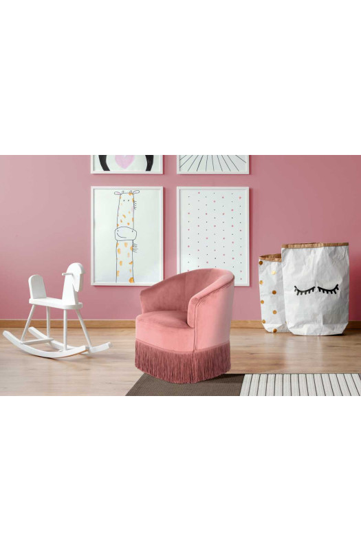 Стильне дитяче крісло з бахромою Крісло Joy Ash pink створює максимально затишну та комфортну обстановку в дитячій кімнаті. Модель, виконана у відтінку курній троянди, ідеально підійде для кімнати маленької принцеси. Оздоблення у вигляді бахроми завершує композицію. У наповненні м'яких елементів крісла використовується пінополіуретан. Оббивка виконана з приємною на дотик бархатистою тканини, що забезпечує комфорт під час відпочинку або дитячих ігор. Крісло витримує навантаження до 50 кг. Joy - ідеальне рішення для меблювання сучасної дитячої кімнати. * Фактичний колір меблів може відрізнятися від фото, в залежності від налаштувань монітора.