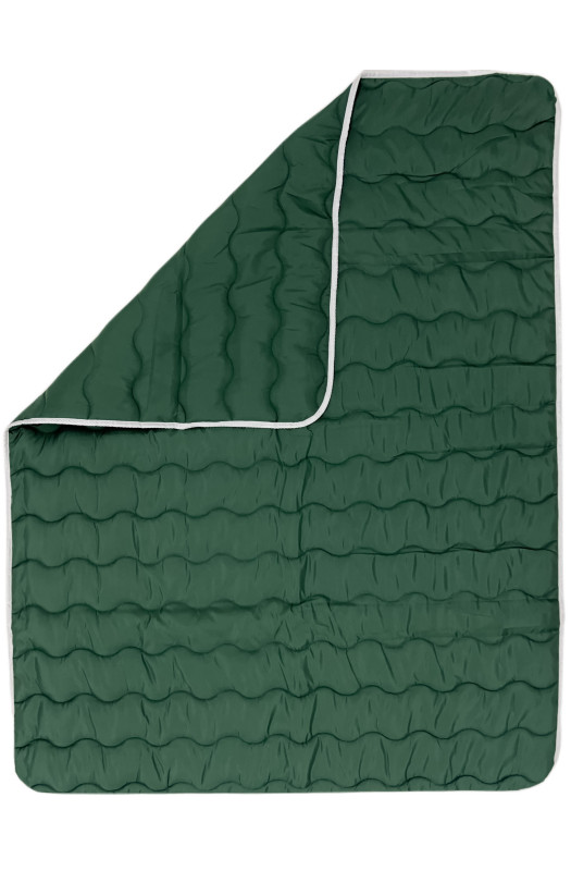 Ковдра демісезонна зі стрічкою 155х215 см Smoke Pine виготовлена у зеленому відтінку, який підходить для будь-яких інтер'єрних рішень. У наповненні силіконізоване волокно, що дозволяє повітрю легко проникати всередину, забезпечуючи терморегуляцію і повітропроникність.