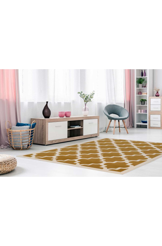 Оригінальна килимове покриття Manolya 2097 gold/ivory додасть відчуття затишку і комфорту простору. Стильний геометричний принт з 3D-ефектом відмінно впишеться в сучасні дизайнерські рішення. Зелений відтінок створить атмосферу спокою і гарного настрою в домі.