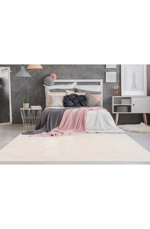Килим Monroe 300 romb cream 160х230 виконаний в сучасному стилі з оригінальною геометрією. Приємний на дотик короткий ворс створює особливий шарм і затишок в інтер’єрі. 3D-ефект, а також ккремовий відтінок, створюють ефектну гру тіней. Модель ідеально підходить для інтер’єрів в стилі авангард, хай-тек і контемпорарі.