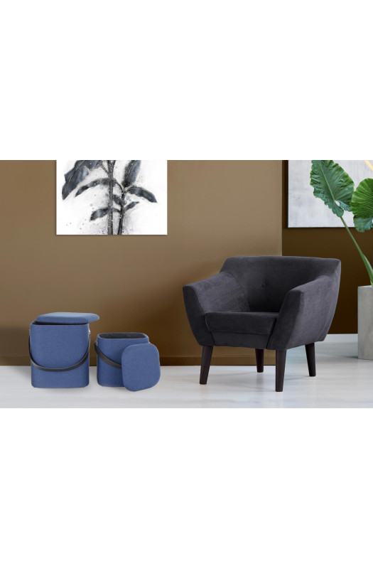 Набір пуфів для створення комфортного інтер'єру Комплект Square T225/2 Blue/Black відрізняється стильним дизайном і високим рівнем практичності. Лаконічний зовнішній вигляд дозволяє використовувати модель в різних стилях інтер'єру. Ручка кріпиться до виробу металевими лямками. Пристосування дає можливість з легкістю переносити пуфи з одного місця в інше. Під сидінням є ящик, в який зручно прибирати речі, необхідні під рукою, наприклад, книги, газети і журнали, а також інші дрібниці. Приємна на дотик тканина оббивки плюс м'якість сидіння, роблять ці пуфи комфортабельними. Модель можна використовувати як окреме місце для сидіння, а також як додаткову підставку під час відпочинку на дивані. * Фактичний колір меблів може відрізнятися від фото,