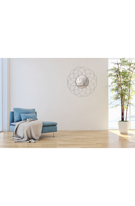 Дизайнерське дзеркало Simona SM110 Chrome з металевою рамою у вигляді квітки стане справжньою окрасою стін у вашому домі. При виготовленні вироби використовувалися: метал, картон і кругле дзеркальне скло. Мінімалістичний рама чорного кольору у вигляді дроту не перевантажувати простір, виглядає стильно і сучасно, вдало вписується в будь-який інтер'єрний стиль. Модель може використовуватися при декоруванні вітальні, спальні або передпокою. P>