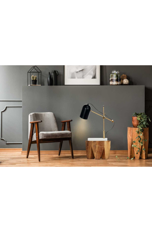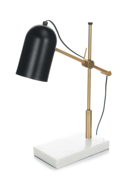 Настільна лампа Spilo KM110 black/gold/white виконана в сучасному стилі. Оптимальна висота, дозволяє використовувати виріб в якості підлогового світильника або настільної лампи. Модель відмінно інтегрується в офісні і житлові приміщення.