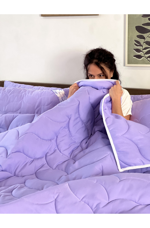 Чохли мають просочення з ефірною олією лаванди у складі. Властивості олії та її легкий лавандовий аромат допоможуть подолати безсоння та подарують спокійні, здорові сни. Ви наче потрапите у лавандовий садок де так приємно відпочивати літнього вечора.