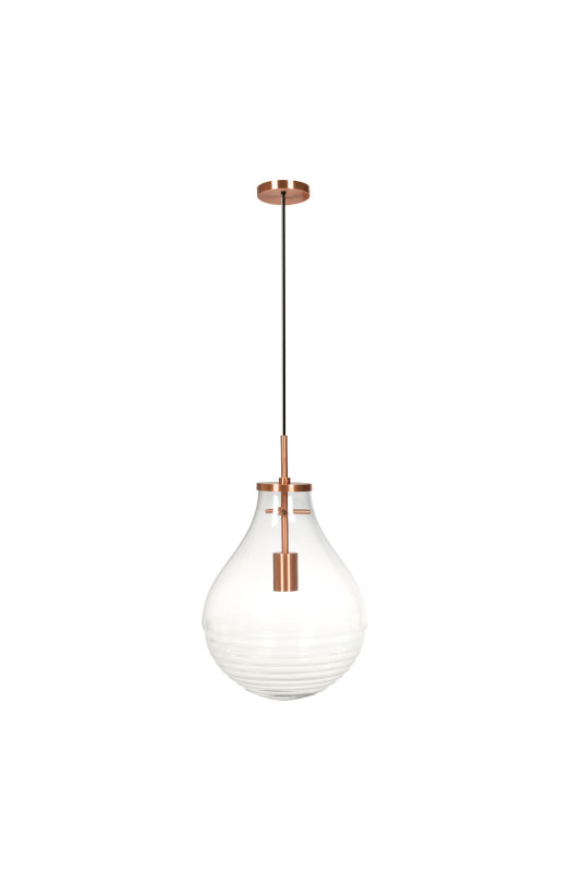 Підвісна лампа Kamo L Clear/Copper допоможе створити яскравий акцент у вашому домі. Ця модель формує приємне, розсіяне освітлення.