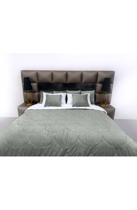 Покривало стьогане черепиця Barkhat 129 срібне 150x220 см виконано в техніці стьобання з дизайном черепиця. Завдяки використанню якісного, теплого синтепону і м’якій текстурі в це покривала так приємно просто загорнутися.