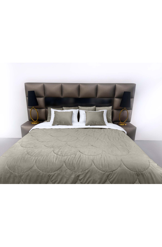 Покривало стьогане черепиця Barkhat 211 хакі 240x240 см виконано в техніці стьобання з дизайном черепиця. Завдяки використанню якісного, теплого синтепону і м’якій текстурі в це покривала так приємно просто загорнутися.