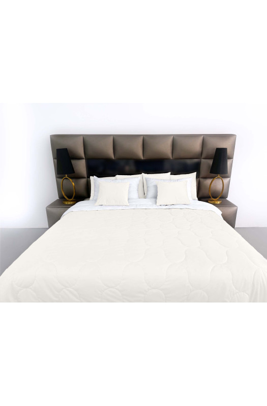 Покривало стьогане еліпс Barkhat 159 молочне 240x240 см виконано в техніці стьобання з дизайном еліпс. Завдяки використанню якісного, теплого синтепону і м’якій текстурі в це покривала так приємно просто загорнутися.