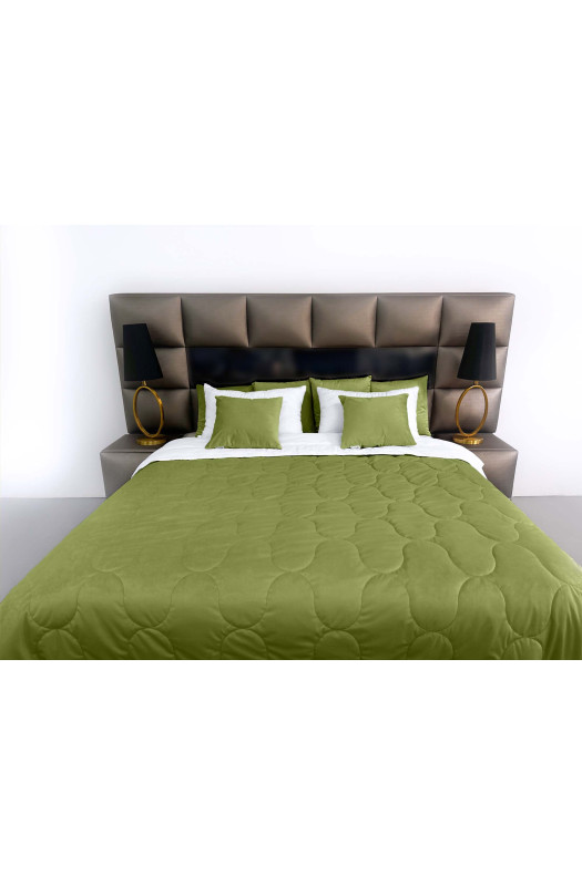 Покривало стьогане еліпс Barkhat 231 зелене 240x240 см виконано в техніці стьобання з дизайном еліпс. Завдяки використанню якісного, теплого синтепону і м’якій текстурі в це покривала так приємно просто загорнутися.