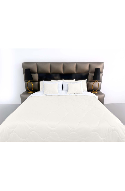 Покривало стьогане хвиля Barkhat 159 молочне 200x220 см виконано в техніці стьобання з дизайном хвиля. Завдяки використанню якісного, теплого синтепону і м’якій текстурі в це покривала так приємно просто загорнутися.