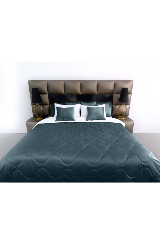Покривало стьогане хвиля Barkhat 225 темно-синій 240x260 см виконано в техніці стьобання з дизайном хвиля. Завдяки використанню якісного, теплого синтепону і м’якій текстурі в це покривала так приємно просто загорнутися.