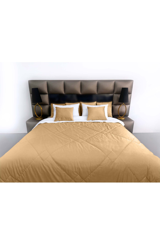 Покривало стьогане лабіринт Barkhat 110 темно-золоте 150x220 см виконано в техніці стьобання з дизайном лабіринт. Завдяки використанню якісного, теплого синтепону і м’якій текстурі в це покривала так приємно просто загорнутися.