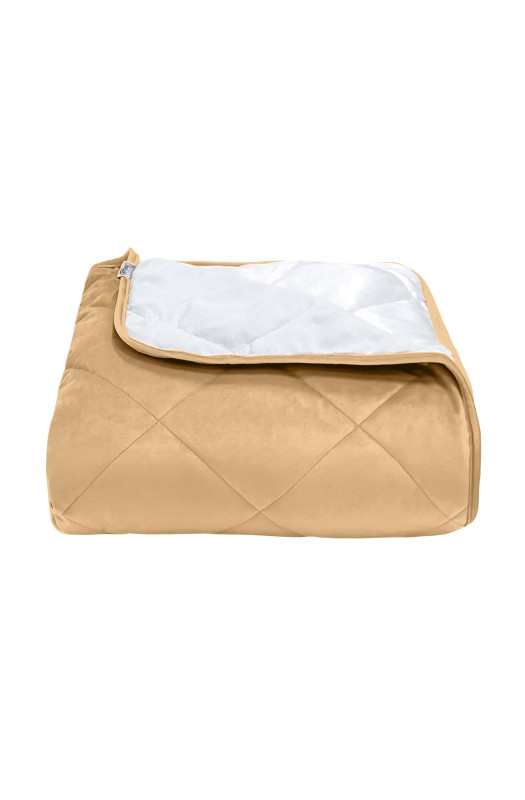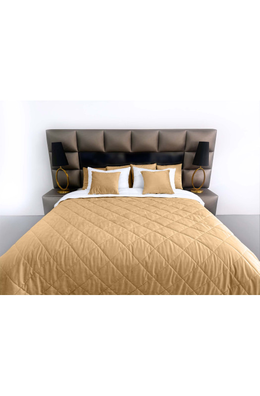 Покривало стьогане ромб Barkhat 110 темно-золоте 240x240 см виконано в техніці стьобання з дизайном ромб. Завдяки використанню якісного, теплого синтепону і м’якій текстурі в це покривала так приємно просто загорнутися.
