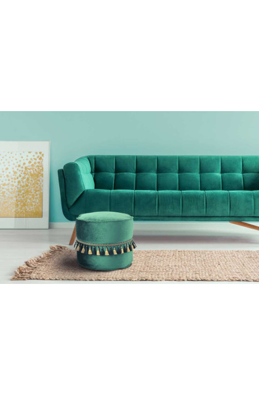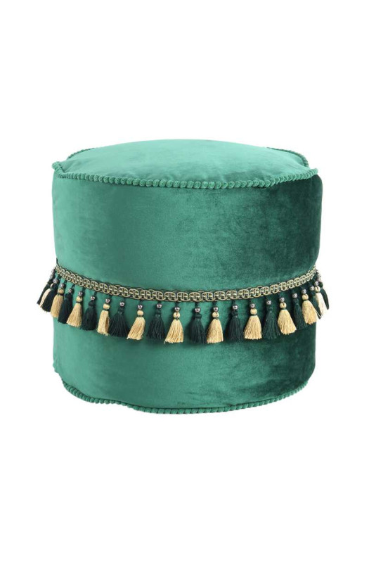 Пуф зі східним шлейфом Яскравий, ефектний пуф Agra Green виконаний в східному стилі. Ця модель легко пожвавить будь-який простір. Виріб зроблено в яскравому смарагдовому відтінку, а декор у вигляді контрастного канта і макраме вносить характерний східний колорит. Оббивка пуфа має оксамитової текстурою. У наповненні використовується щільний пінополіуретан, який дарує неймовірну м'якість. У нижній частині вироби є блискавка. Модель відрізняється компактними розмірами, тому її можна використовувати навіть в малогабаритних кімнатах. Пуф Agra - додайте східні ноти в ваш будинок. * Фактичний колір меблів може відрізнятися від фото, в залежності від налаштувань монітора.