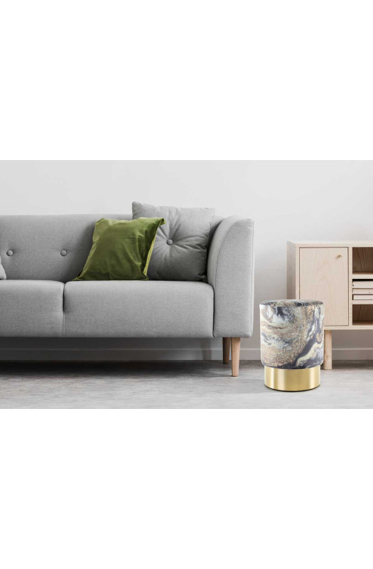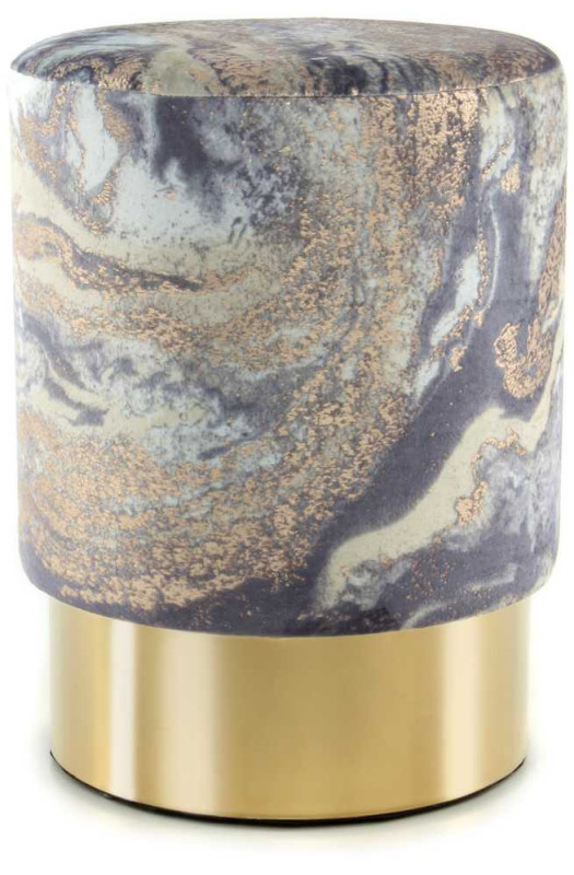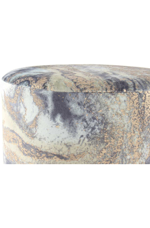 Круглий пуф з металевим елементом Пуф Caramel Lightblue / Gold - це комфорт і яскравий дизайн. Поєднання класичної круглої форми і стильний мармуровий принт, притягує увагу. Металева основа, виконане в золотом відтінку, підкреслює сучасне звучання моделі. Приємна на дотик, оксамитова тканина дозволяє відчути комфорт. Оптимальна висота пуфа, дає можливість використовувати його, як у вітальні, так і в передпокої. Дизайн Caramel ідеально підходить для сучасних дизайнерських рішень. * Фактичний колір меблів може відрізнятися від фото, в залежності від налаштувань монітора.