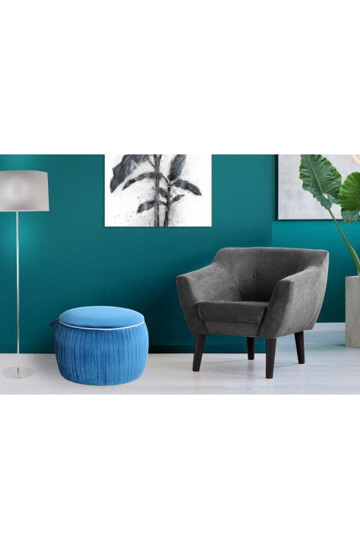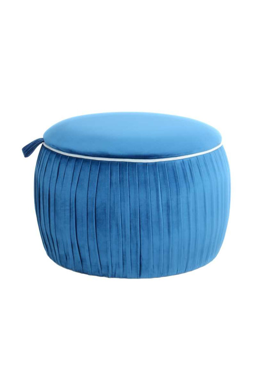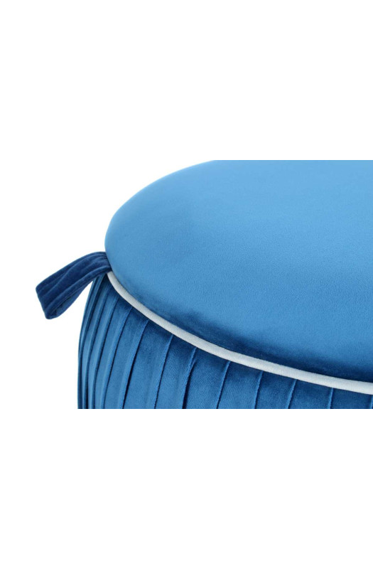 Стильний пуф з ящиком для зберігання Ефектний пуф Crush Blue - елемент інтер'єру, який додасть дизайну особливий шарм. Оксамитова, приємна тактильно оббивка і м'яке сидіння забезпечують комфортабельність вироби. Модель виконана в небесно-блакитному кольорі з контрастною ниткою по канту, що дозволяє використовувати її в різних інтер'єрних рішеннях. Оздоблення-плісе, додає дизайну особливого звучання. Ця модель практична, у місткий ящик під сидінням ви легко можете прибрати речі, які потрібні під рукою. Внутрішня частина пуфа також обшита бархатистою тканиною. * Фактичний колір меблів може відрізнятися від фото, в залежності від налаштувань монітора.