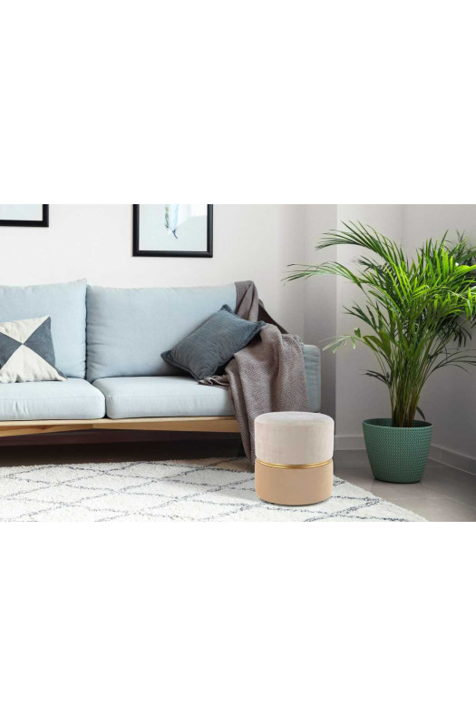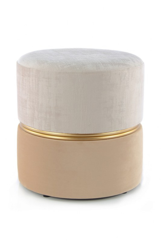 Двоколірний пуф в сучасному дизайні Flesh Cream - оригінальний пуф з сучасним дизайном. Модель привертає увагу завдяки використанню двох відтінків - ніжний крем-брюле і слонова кістка. Для оббивки використовуються тканини з різними текстурами, що вносить контраст. Нижня частина має приємну бархатистістю, а ось текстиль вгорі злегка фактурний. З'єднує дві частини пуфа металеве кільце в золотом відтінку, що додає виробу особливий шарм. Цю модель можна використовувати як окреме місце для сидіння або підставку для ніг. Використання гумових ніжок забезпечує захист підлогового покриття від подряпин. Завдяки універсальному дизайну, пуф Flesh стане прекрасним доповненням вітальні в будь-якому стилі. * Фактичний колір меблів може відрізнятися від фото, в залежності від налаштувань монітора.