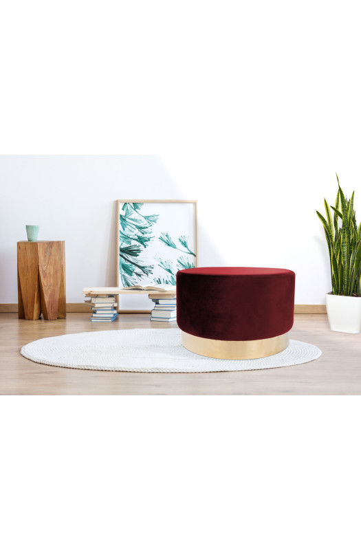 Комфортний круглий пуф з металевою ніжкою Jad Red - стильні меблі для оригінального дизайну інтер'єру. Широкий круглий пуф з м'яким сидінням і оригінальної металевої ніжкою привертає увагу. Виріб підходить для інтер'єрних рішень в різних стилях. Це універсальна модель, яку можна використовувати і в якості додаткового місця для сидіння, і як підставку для ніг. Прекрасно впишеться в обстановку вітальні, передпокої або спальні. Оптимальна висота сидіння, дозволяє поставити пуф поруч з журнальним або кавовим столиком. Варто відзначити високу міцність моделі, оскільки вона посилена пінопластовим матеріалом. Цей пуф гармонійно доповнить інтер'єр з оригінальною м'якими меблями і стильними аксесуарами. * Фактичний колір меблів може відрізнятися від фото, в залежності від налаштувань монітора.