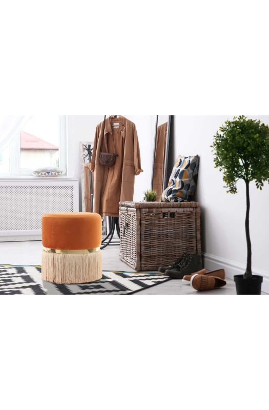 Стильний пуф з бахромою Пуф Milano Orange / Champagne / Gold - прекрасний вибір для меблювання сучасного інтер'єру. Модель виконана в теплому відтінку шампанського і яскравому апельсина. Для декорування використовується бахрома в тон, а також металеве кільце в золотому кольорі. Пуф в такому дизайні привнесе в інтер'єр елегантність і вишукані ноти. Milano чудово підійде для меблювання вітальні, спальні або передпокою. Виріб може грати роль додаткового місця для відпочинку або комфортної підставки під ноги в лаунж-зоні. * Фактичний колір меблів може відрізнятися від фото, в залежності від налаштувань монітора.