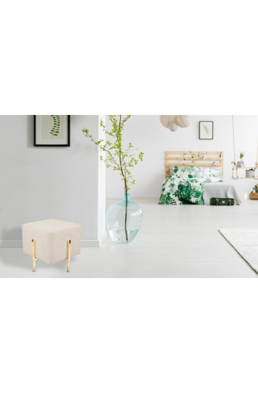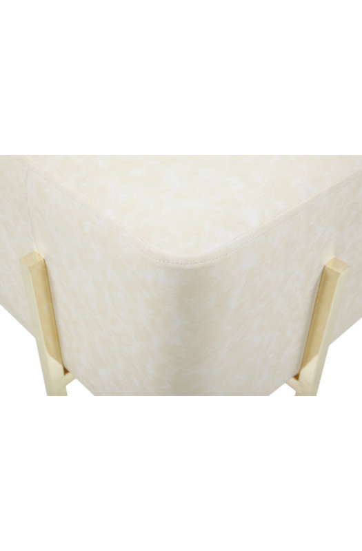 Стильний пуф для авангардного інтер'єру Пуф-стілець Dik Cream / Gold привертає увагу і легко стане акцентним елементом в сучасному інтер'єрі. Оригінальна модель виконана у формі куба. Композицію доповнюють ніжки в золотому кольорі. Пуф універсальний, його легко інтегрувати як в авангардний, так і в класичний інтер'єр. Стілець підходить для меблювання всіх кімнат в будинку від спальні до вітальні. Ця модель витримує вагу до 120 кг. Dik - пуф, який привнесе в інтер'єр сучасного звучання. * Фактичний колір меблів може відрізнятися від фото, в залежності від налаштувань монітора