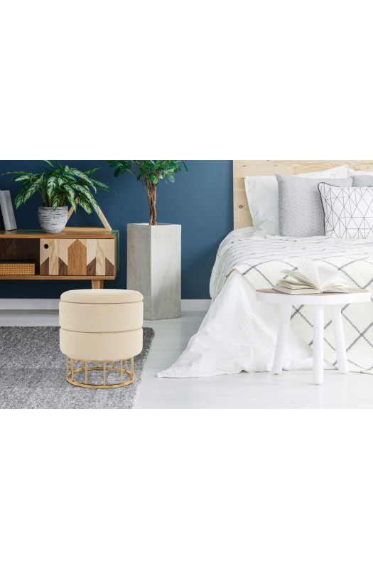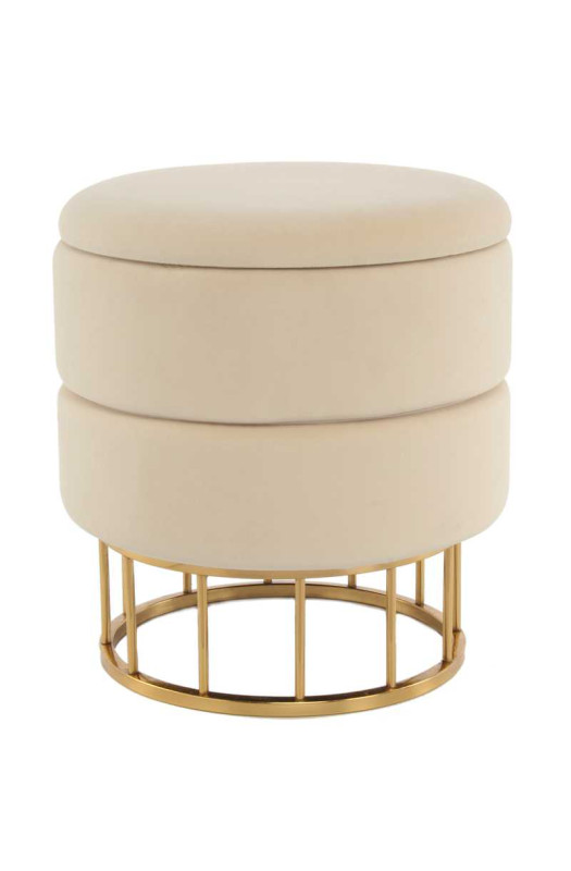 Елегантний пуф з ящиком для зберігання Стильний пуф Zlata Ivory / Gold відрізняється ефектним дизайном і високим рівнем практичності. В основі моделі використовується елегантний металевий каркас золотом відтінку. Сидіння і короб для зберігання виконані в приємній на дотик, оксамитової тканини кольору слонової кістки. Модель додасть в інтер'єр особливу чарівність. Наявність короба для зберігання під сидінням, дозволяє легко заховати необхідні речі, такі як зарядка для смартфона, журнали, книги і т.д. Крім того, пуф можна використовувати в якості додаткового місця або підставки під ноги. Пуф Zlata - це практичність, універсальність і елегантний дизайн. * Фактичний колір меблів може відрізнятися від фото, в залежності від налаштувань монітора.