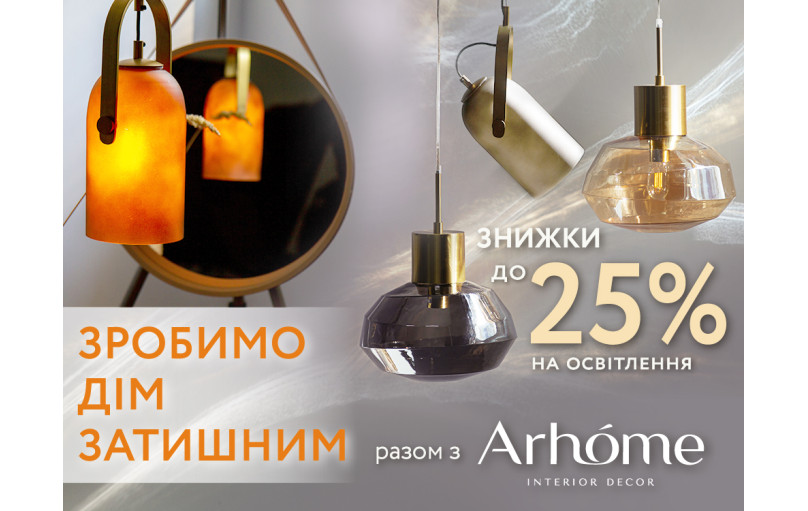 Скидки на дизайнерское освещение до -25% от Arhome...