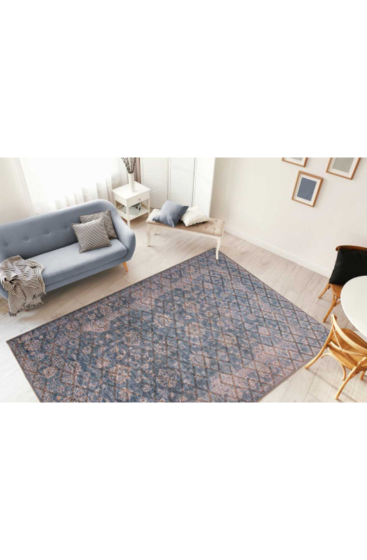 Antique 225 blue/gold — плетёный ковёр с рельефным рисунком. Модель сочетает в себе привлекательный дизайн и невероятную комфортабельность. Изделие обладает лёгким винтажным характером. Ковёр отлично впишется в дизайны ретро, модерн, прованс.