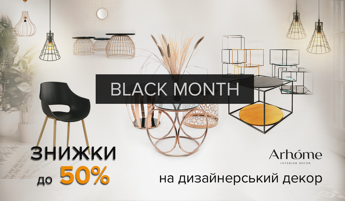 Нам показалось, что черной пятницы для хорошего шопинга недостаточно… Так что с 1 ноября мы запускаем BLACK MONTH — целый месяц безумных скидок на дизайнерский декор!