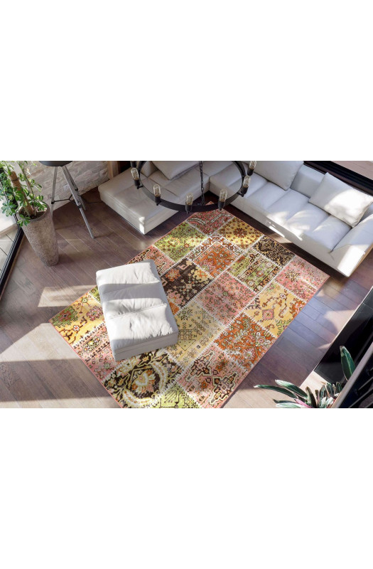 Ariya 425 Multi 160х230 — ковёр с орнаментом, выполненный в стиле patchwork. Модель прекрасно дополнит интерьеры этно, винтаж и прованс. Лаконичные оттенки плюс бахрома придают модели комфортабельность.