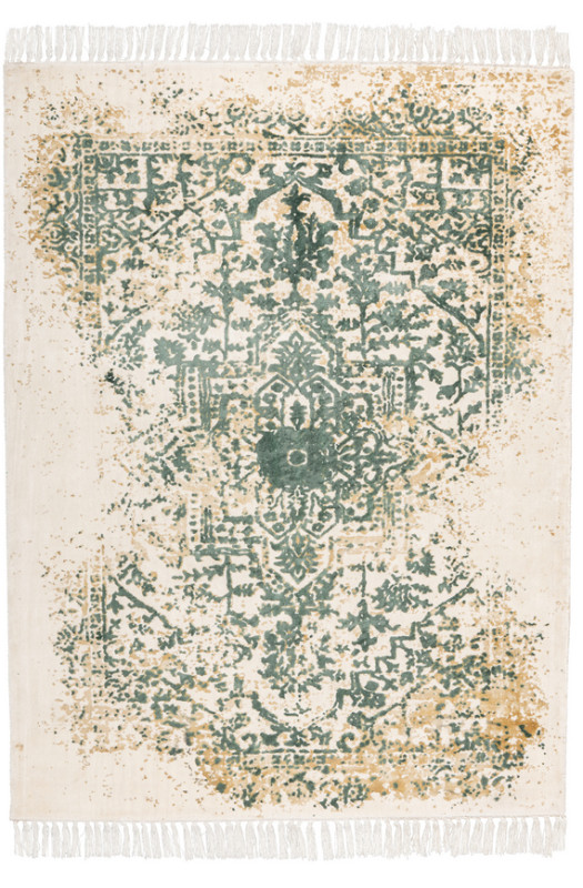 В основе изделия натуральный хлопок, отвечающий за фиксацию ковра на полу. Ворс модели изготовлен из вискозы, что обеспечивает приятную на ощупь текстуру. Такое сочетание материалов делает изделие комфортным и внешне привлекательным.