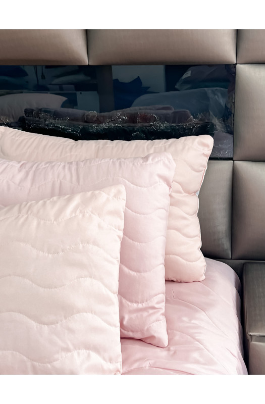 Использование качественных материалов, дает возможность одеялу быстро восстанавливать форму, гарантируя здоровый, спокойный сон. Изделие выполнено в технике стёгания. Дизайн — волны.