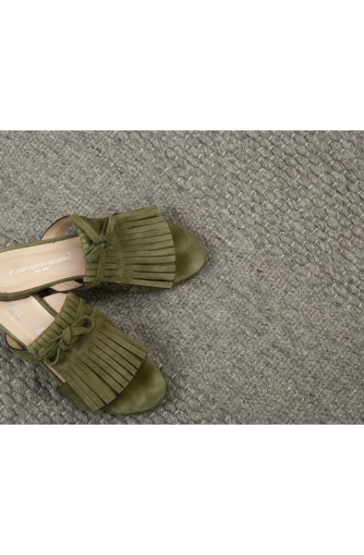 Модель выполнена в бежевом цвете. Ковёр на 100% изготовлен из натурального хлопка, что делает повышает прочность и износостойкость изделия. В основе — шерсть.