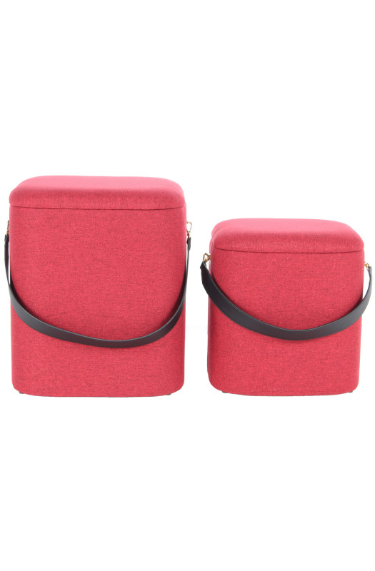 Ручка крепится к изделию металлическими защёлками. Приспособление даёт возможность с лёгкостью переносить пуфы с одного места в другое. Под сиденьем есть ящик, в который удобно убирать вещи, необходимые под рукой, например, книги, газеты и журналы, а также другие мелочи.