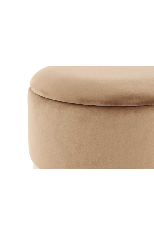 В наполнении сиденья используется пенополиуретан, а обивка выполнена из приятной на ощупь бархатной ткани. Такое сочетание материалов обеспечивает комфортный отдых. Пуф можно использовать в качестве дополнительного места или как подставку под ноги.
