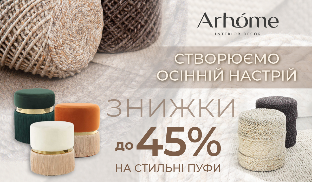 Создаем осеннее настроение → скидки до 45% на стильные пуфы.