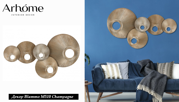 Декор Blammo M510 Champagne – еще один вариант трендового украшения стен в современном интерьере. Изготовлен из МДФ, окрашен в позолоту. К преимуществу арт-объекта отнесем нетривиальный внешний вид, универсальность использования и безупречное качество. Также изделие будет доступно для заказа в белом цвете.