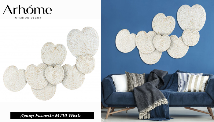 Настенный декор Favorite M710 White – это оригинальный арт-объект белого цвета, выполненный из МДФ. По виду он напоминает совокупность кувшинок. Ширина – 156 см, высота – 80 см. Такая декоративная композиция станет настоящей изюминкой вашего интерьера!