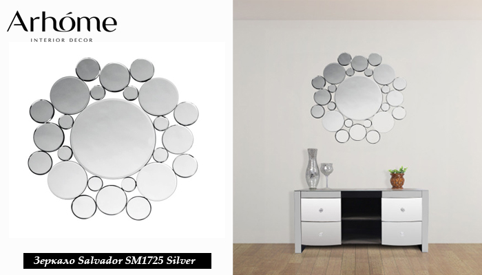 Декоративная композиция Salvador SM1725 Silver, состоящая из круглых зеркальных элементов, соединенных между собой. Диаметр – 84,5 см. Современное решения для гостиных, спальных или ванных комнат.
