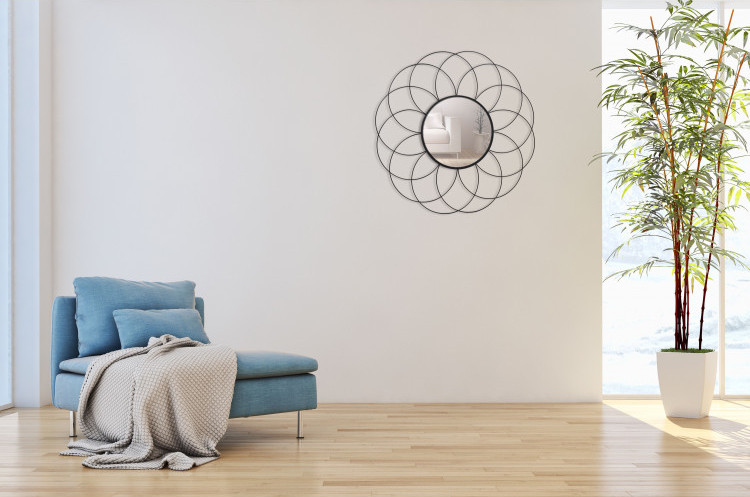 Настенное зеркало Simona SM110 Black в черной металлической раме в виде цветка. Лаконичное, сдержанное, но в тоже время оригинальное украшение стен в современном интерьере.