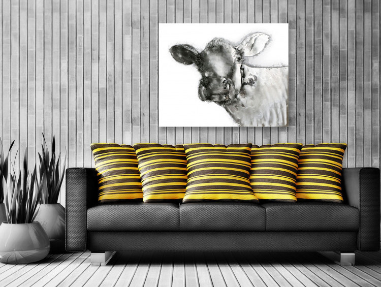 Фреска Cow – настенное украшение для гостиной, прихожей или спальной комнаты. Реалистичное изображение коровы на холсте выполнено акриловыми красками серебристого цвета.