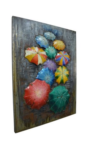 Металлическая фреска Umbrellas – яркое и стильное дополнение современного интерьера. Объемное изображение ярких зонтов на сером «дождливом» фоне порадует в самый ненастный день и зарядит оптимизмом.