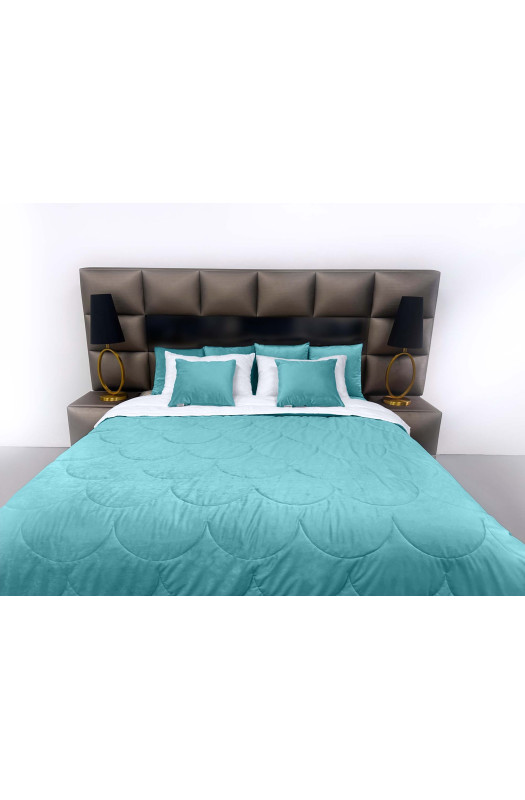 Покрывало стеганое черепица Barkhat 131 бирюзовое 240x240 см выполнено в технике стеганья с дизайном черепица. Благодаря использованию качественного, теплого синтепона и мягкой текстуре в это покрывало приятно просто укутаться.