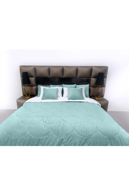 Покрывало стеганое черепица Barkhat 224 голубое 220x220 см выполнено в технике стеганья с дизайном черепица. Благодаря использованию качественного, теплого синтепона и мягкой текстуре в это покрывало приятно просто укутаться.