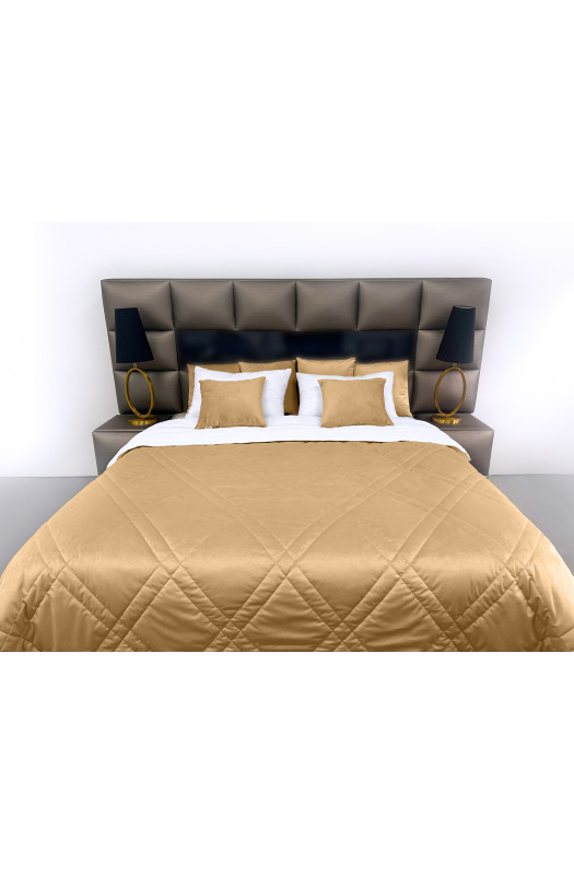 Покрывало стеганое мозаика Barkhat 110 темно-золотое 150x220 см выполнено в технике стеганья с дизайном мозаика. Благодаря использованию качественного, теплого синтепона и мягкой текстуре в это покрывало приятно просто укутаться.