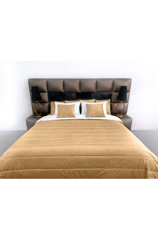 Покрывало стеганое полоса Barkhat 110 темно-золотое 160x240 см выполнено в технике стеганья с дизайном полоса. Благодаря использованию качественного, теплого синтепона и мягкой текстуре в это покрывало приятно просто укутаться.
