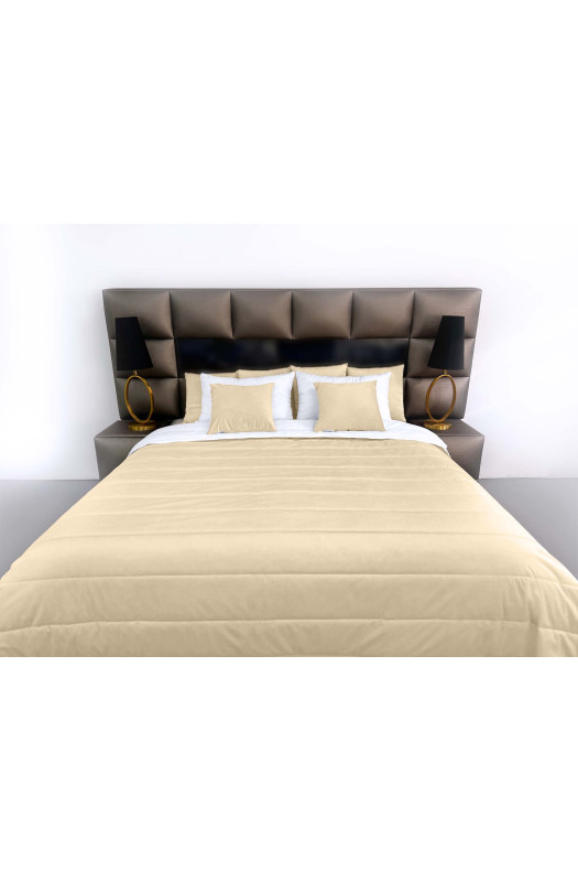 Покрывало стеганое полоса Barkhat 157 бежевое 130x240 см выполнено в технике стеганья с дизайном полоса. Благодаря использованию качественного, теплого синтепона и мягкой текстуре в это покрывало приятно просто укутаться.