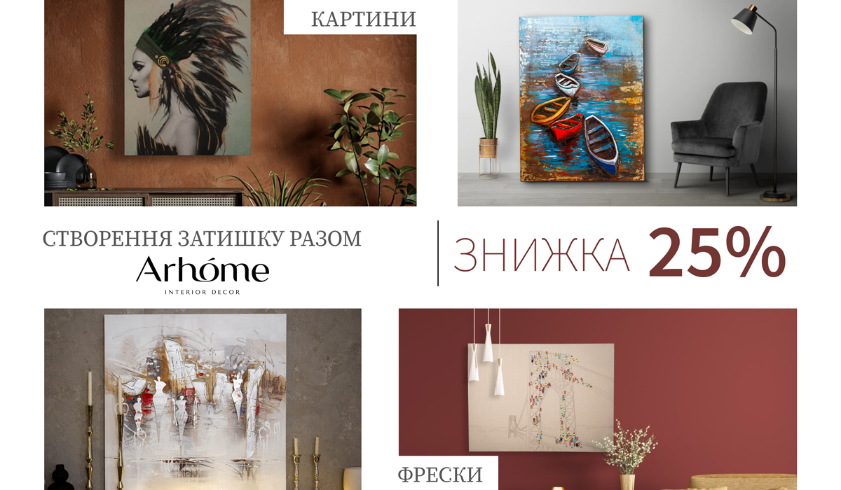 Выбирайте дизайнерскую картину или фреску в интернет-магазине Arhome. Оформляйте заказ прямо на сайте или звоните по телефону +38(099) 180-03-42.